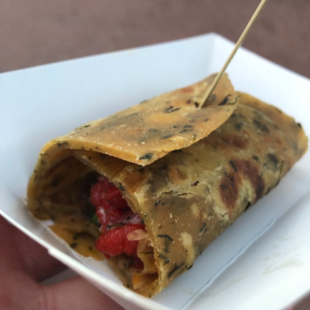 Triple Suns Breakfast Wrap and Andoan Fruit with Muja Sauce from Ronto Roasters (Hollywood Studios)