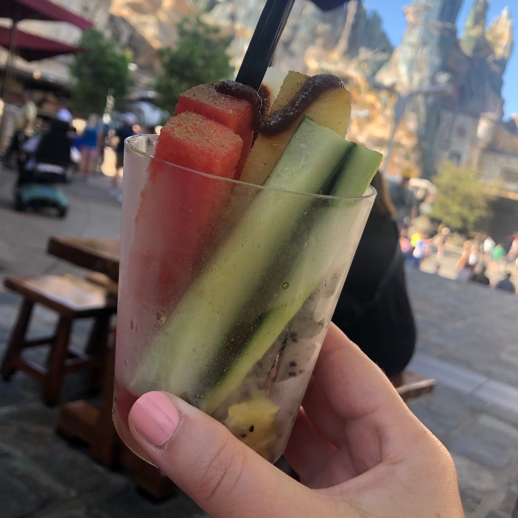 The Outpost Popcorn Mix from Kat Saka’s Kettle in Star Wars: Galaxy’s Edge is the perfect blend of sweet and spicy. The sweet tastes a bit like Fruity Pebbles, but then the nice gentle kick from the spiced blend tones it down. We are a family that loves popcorn (most popcorn varieties at WDW are vegan-friendly) and this mix is one we still talk about.