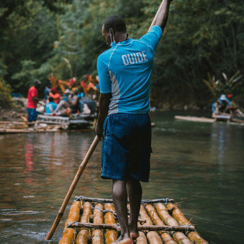 One of the most popular tourist activities is a gentle rafting experience on the Martha Brae. A member of the team of 85 licensed captains assists guests onto a thirty-foot bamboo raft before pushing off for a one-hour ride down a three mile stretch of the river.